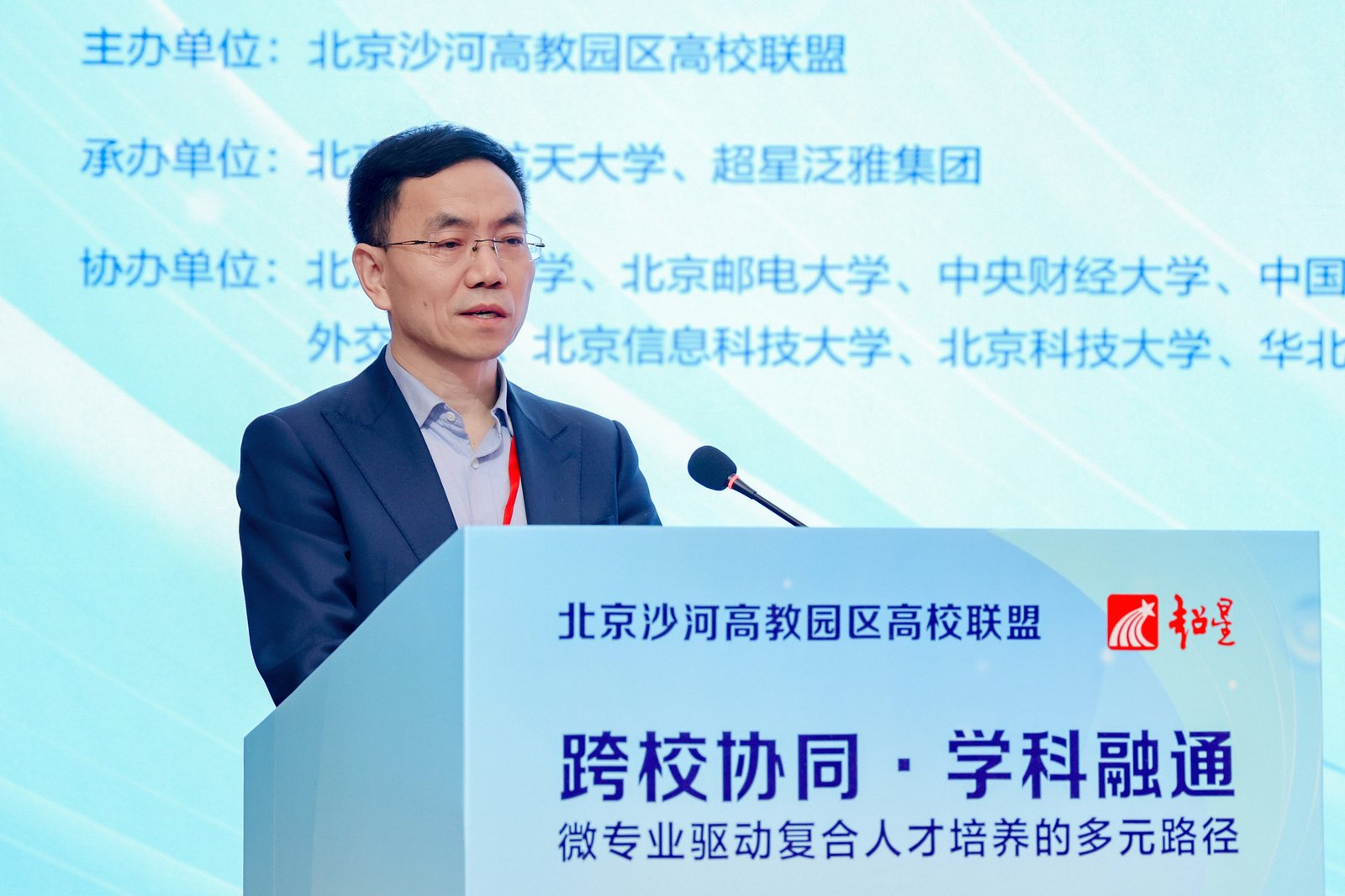 本次论坛由北京航空航天大学承办,北京师范大学、北京邮电大学、中央财经大学、中国矿业大学(北京)、外交学院、北京信息科技大学、北京科技大学、华北电力大学等联盟高校联合协办,超星泛雅集团支持。教育部高校学生司(高校毕业生就业服务司)副司长吴爱华、中国教育发展战略学会常务副会长兼秘书长柯春晖、北京未来科学城管理委员会副主任、昌平区副区长赵仕伟、昌平区副区长高阳、教育部高校学生司(高校毕业生就业服务司)就业指导服务处处长詹清华、北京市教育委员会高等教育处处长李惊涛,以及北京沙河高教园区高校联盟成员高校的北京航空航天大学副校长吕卫锋、北京师范大学副校长汪明、北京科技大学副校长王鲁宁、中央财经大学副校长李建军、北京邮电大学副校长王源、华北电力大学副校长刘云鹏、外交学院副院长李洪梅、北京信息科技大学副校长王兴芬出席论坛。论坛吸引了来自全国28个省市180余所高校的450余名教育教学专家、微专业负责人、一线教师及教育管理人员齐聚一堂,聚焦微专业建设核心议题,共话复合人才培养的未来蓝图。